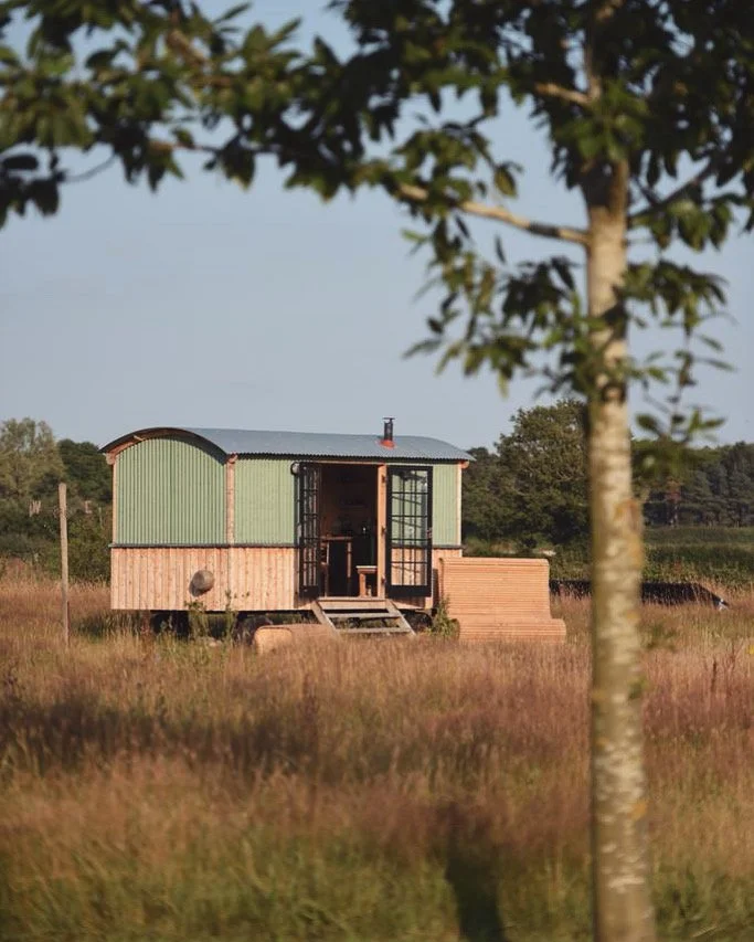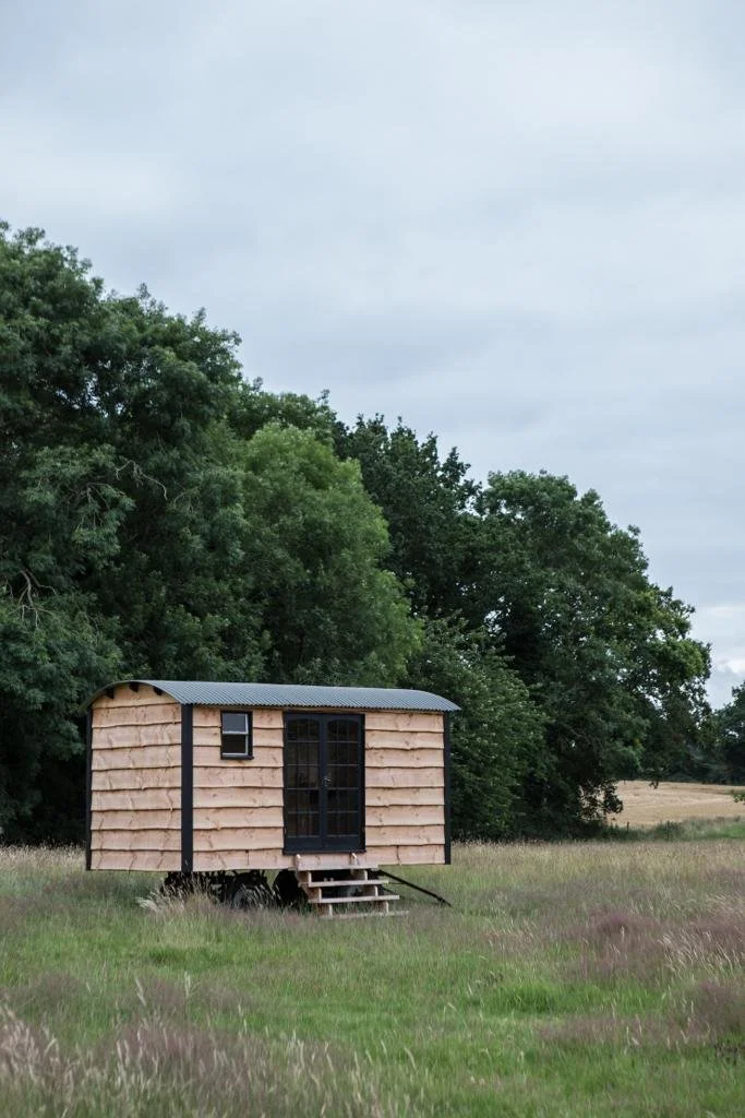 Handcrafted Wagon. Distinctive black timber cladding. Using Japanese wood preservation technique - Shou Sugi Ban with an Airstream influence. Dual aspect with great views. Sleeps 2
